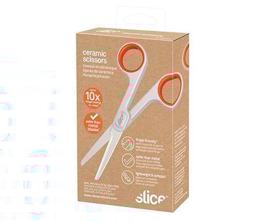 Kéo cắt lát gốm nhỏ gọn 10544 có lưỡi dao bằng gốm với các cạnh tròn, giúp sử dụng an toàn và chắc chắn.