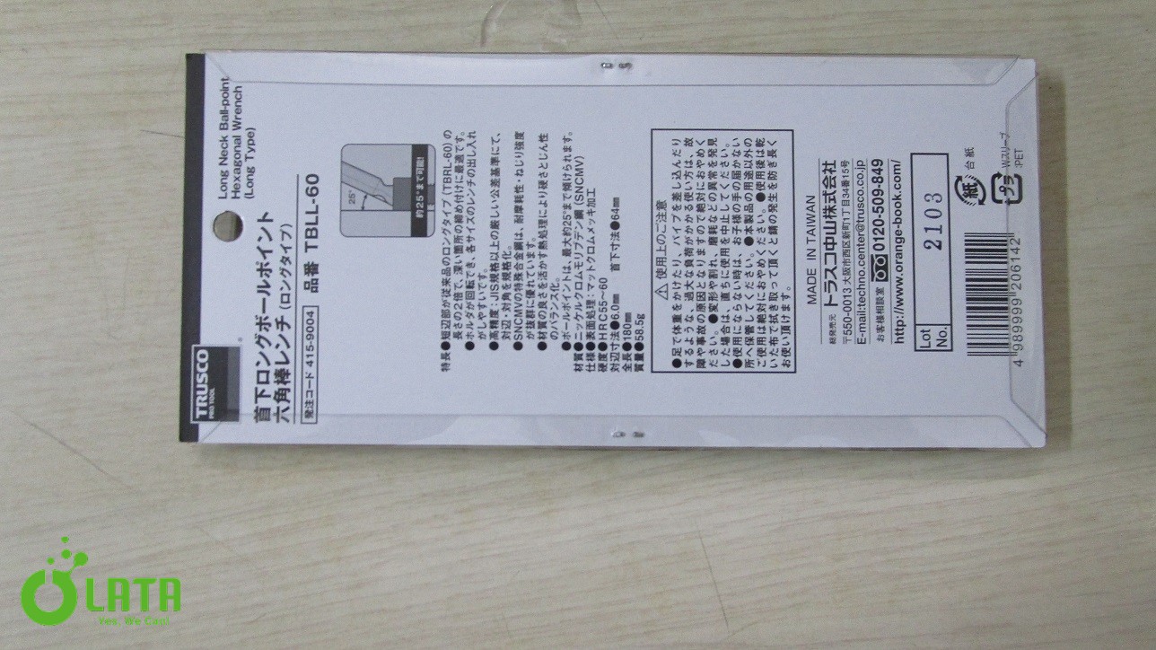 Tên sản phẩm : Relief Long Ball Point Hexagon Key Wrench Lục lăng TBLL-60Model : TBLL-60 (61-2371-97)Maker : As One – GREENCROSS (Arkland Sakamoto)