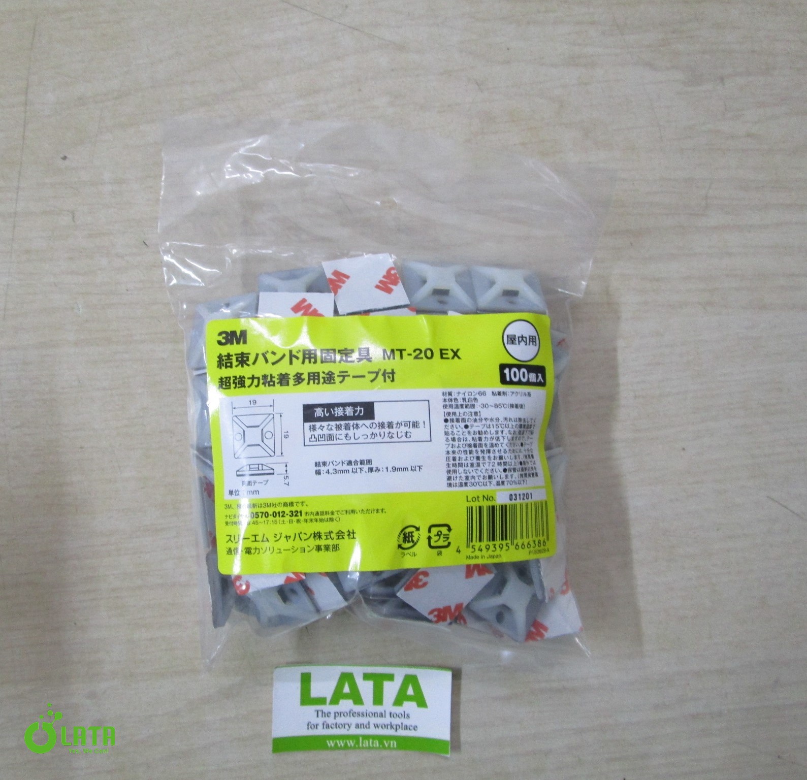 Tên sản phẩm : Binding Band Fixture For Indoor Use Kẹp giữ dây MT20 EXModel : MT20 EX (62-8962-59)Maker : Asone – 3M